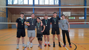 Am Freitag vor den Ferien war es mal wieder soweit, die Schulmeisterschaften im Volleyball der Sek.II fanden statt. In der Turnhalle Ost kämpften 8 Mannschaften der Jungen um die Schulmeisterschaft, in der Turnhalle Glück-Auf waren 12 Mädchenmannschaften am Ball. Gebildet wurden die Mannschaften aus den Sportkursen der 11. und 12. Klassen. Die jungen Männer spielten in zwei Vorrundengruppen die Plätze für die zwei Halbfinalpaarungen und die Platzierungsspiele um Platz 5 und 7 aus. Im ersten Halbfinale setzte sich die Mannschaft I vom Sportkurs Schneider 12/3 souverän mit 25:16 durch. Im zweiten Halbfinale gewann die Mannschaft II vom Sportkurs Schneider 12/3 knapp mit 25:23 gegen den 12er Kurs von Frau Thom-Wilhelm. Die zuletzt genannte Mannschaft sicherte sich dann Platz 3 durch einen knappen Sieg über den einzigen 11er Kurs im Halbfinale von Herrn Förster. Das Finale versprach spannend zu werden, da die II. Mannschaft vom Schneider-Kurs in der Vorrunde gegen die I. Mannschaft knapp gewonnen hatte. Aber die Luft war wohl raus und der Favorit gewann deutlich 25:13.Vor den Augen der Sportlehrer, Kollegen und der Mitschüler gab es spannende, faire, und vor allem im Halbfinale und Finale auch gutklassige Volleyballspiele zu sehen.