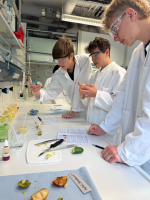 Am Montag, dem 16. Juni, tauchten einige Achtklässlerinnen und Achtklässler unter dem Motto „Säuren – nicht nur ätzend!“ in die faszinierende Welt der Säuren ein. Begleitet wurden sie von Frau Linke und Frau Hoang-Meanard. In spannenden Experimenten erfuhren die Jugendlichen, dass Säuren weit mehr sind als nur gefährliche Substanzen mit Warnsymbol – sie begegnen uns täglich in der Natur, in Lebensmitteln oder im menschlichen Körper. Mit großem Interesse und Neugier untersuchten die Schülerinnen und Schüler ihre Eigenschaften und Bedeutung, insbesondere in biologischen Zusammenhängen.