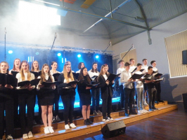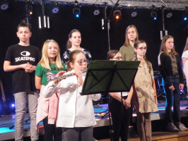 Das Publikum zeigte sich begeistert und ließ sich von der Euphorie der Mitwirkenden anstecken. Die von Herrn Taubert installierte Technik zauberte aus der sonst eher nüchternen Schulmensa ein Konzerthallen-Ambiente, in der alle Akteure durch Lichteffekte und Sound noch besser zur Geltung kamen.