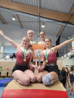 Thessa Hubl, Polly Heinrich, Marie Weißenberger und Lina Grüttner trainierten seit dem Sieg im Regionalfinale emsig, um das gesteckte Ziel erreichen zu können. Trotz Abiturstress, Klausuren und anderen zu erbringenden schulischen Leistungsnachweisen gingen die 4 Turnerinnen mehrmals wöchentlich an die Turngeräte, um an ihren Ausführungen zu feilen. Marie, Lina und Thessa turnen beim Sportverein „Einheit“ Borna. Polly ist Mitglied beim Turnverein Markkleeberg.