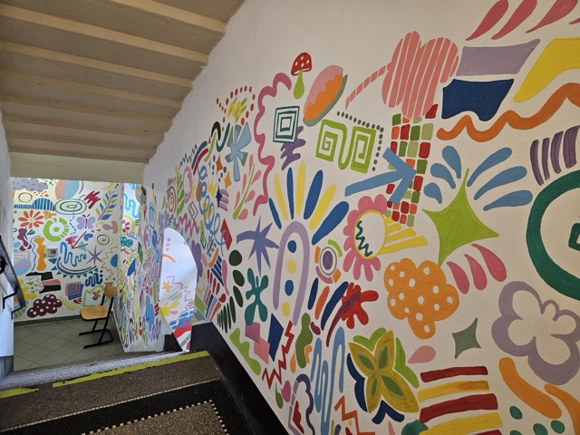 Egal, ob Kellergang, Klassenräume oder (perspektivisch) Schulhof – wir machen Schule bunt. Denn wir wollen nicht nur ein tristes Gebäude zum Lernen. Wir wollen einen Ort, so bunt und lebendig wie ihr. Deshalb zücken wir Pinsel und Farben und machen dort weiter, wo wir im Sommer begonnen haben. Wenn du also Lust hast, unsere Schule bunter und fröhlicher zu gestalten, sicher im Umgang mit dem Pinsel bist und grauen Wänden den Kampf ansagen möchtest, dann komm zu uns. Denn eine farbenfrohe Umgebung inspiriert, fördert Kreativität und macht Lust auf Lernen!