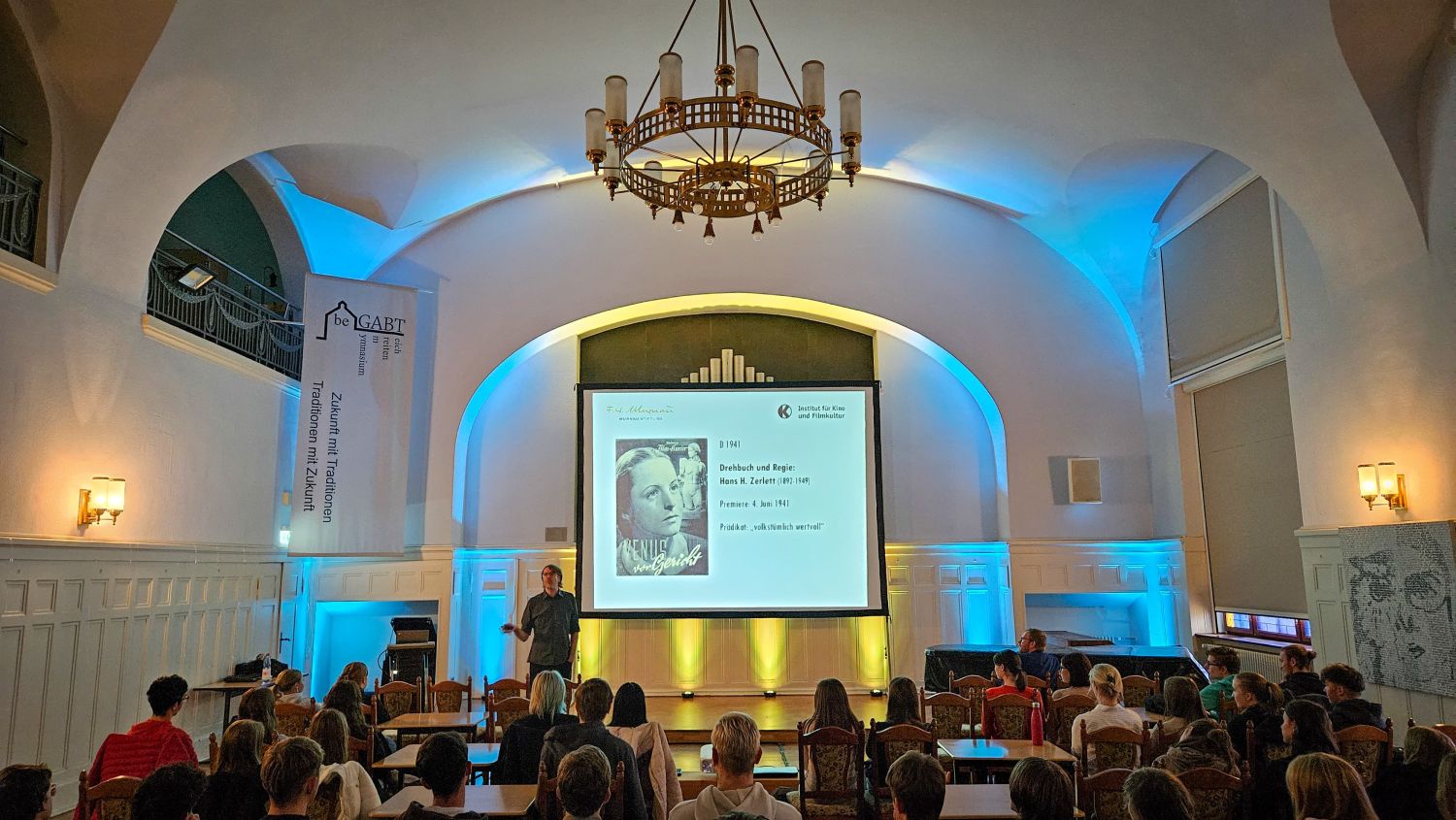 Am 12. November 2025 verwandelte sich die Aula des Gymnasiums „Am Breiten Teich“ Borna in einen besonderen Lernort: Im Rahmen eines Kinoseminars setzten sich einige Schülerinnen und Schüler der Klassenstufen 10 bis 12 freiwillig knapp drei Stunden mit dem nationalsozialistischen Propagandafilm „Venus vor Gericht“ (1941) auseinander.